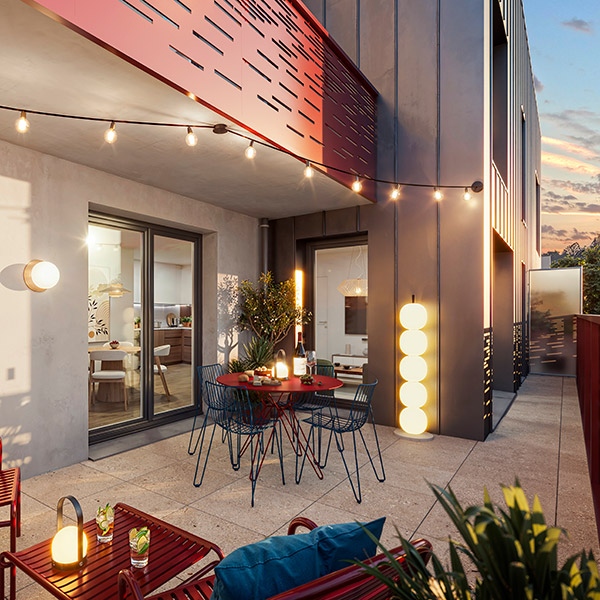 - Des loggias, balcons, terrasses ou jardins privatifs (selon les logements) qui prolongent les espaces intérieurs en laissant entrer abondamment la lumière ;
